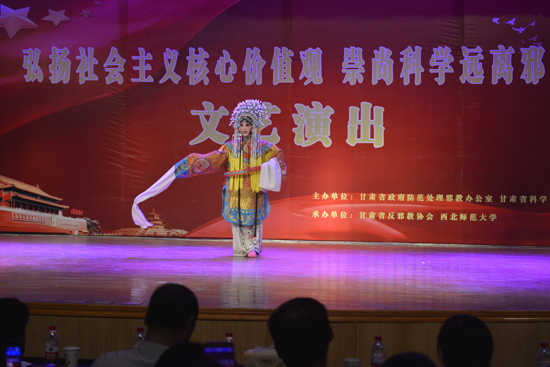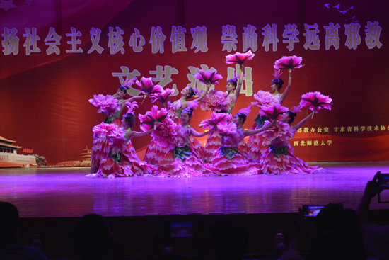 6月12晚,学校和甘肃省反邪教协会联合举办以“弘扬社会主义核心价值观 崇尚科学 远离邪教”为主题的宣传演出活动。省委政法委副书记、省政府防范处理邪教办公室主任金祥明,省科学技术协会党组书记、第一副主席陈炳东,省政府防范处理邪教办公室副主任梁正伟和我校党委副书记刘玉泉等及相关职能部门负责人、各学院党委副书记、辅导员、学生共400余人观看演出。