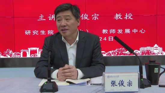 张俊宗从大历史观的角度和自己作为研究生导师的亲身体会出发,引经据典、旁征博引,从五个方面阐述了怎样践行立德树人,做好学生的“大先生”。一要做明大理的导师,一个老师好不好,最终是由学生来评价的,要想成为学生心中想得起、聊得出、敬得真的导师,就要在培养研究生的过程中时刻铭记德智并重、育人育才、育人为先。二要做明大德的导师,研究生是我们国家未来发展的主力,中华民族伟大复兴的中国梦要靠青年一代来实现,导师指导培养的研究生一定要理想信念坚定、有国家情怀和强烈的社会责任感,而不是精致的利己主义者。三要做明大学的导师,既要培养研究生好学,督促他们勤学好问,又要培养研究生博学,博览群书、树立大历史观,心有多大,学问就有多大,还要培养研究生狠学,严格要求并给他们压力,让他们学到真学问。四要做明大格的导师,在研究生面前为师要正直、为师要宽厚、为师要谦让、为师要严谨,真正做到为人师表、潜移默化。五要做明大爱的导师,做到心底无私、心中有爱,多了解学生、多过问学生、多引导学生、多帮助学生,成为学生学业和成长路上的的再生父母。