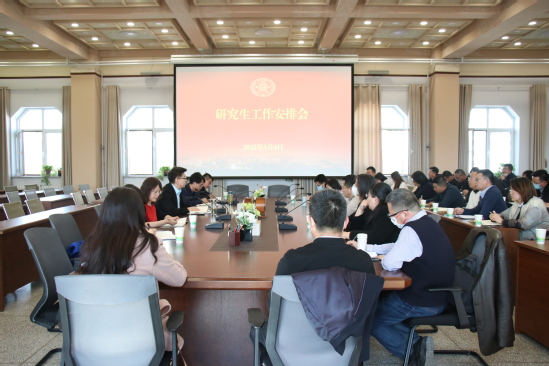 会上,研究生院负责人对2021年研究生教育工作进行了总结回顾,对存在问题与不足进行了梳理分析,从落实立德树人根本任务、优化学科和专业设置、培育核心竞争力、深化招生培养模式改革、推进治理能力现代化等五个方面对“十四五”研究生重点工作作了谋划部署,从修订培养方案、召开研究生会议、研究生招生复试、专业学位实习实践、课程体系完善、研究生访学和专业竞赛组织、学位授予和评价标准完善、学位论文质量把控、导师队伍建设、博士点申报和教育信息化等方面对2022年研究生重点工作作了具体安排。