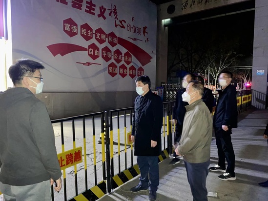 15日凌晨会后,张俊宗、刘仲奎、韩高年连夜前往校本部家属区、教学区、西门和南门督导检查物理隔离设施和封闭围栏设置情况。