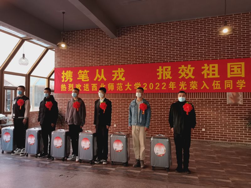 学校希望入伍同学认真学习和践行好习近平强军思想,增强政治素养,提升政治能力;服从命令,听从指挥,提升自己的军事能力;秉持校训精神,强化专业学习,提升自身素养,努力成为师大学生的“天花板”,为实现党在新时代的强军目标奉献西北师大学子的青春力量,以优异的成绩回报家庭、回报母校、回报社会、回报祖国。