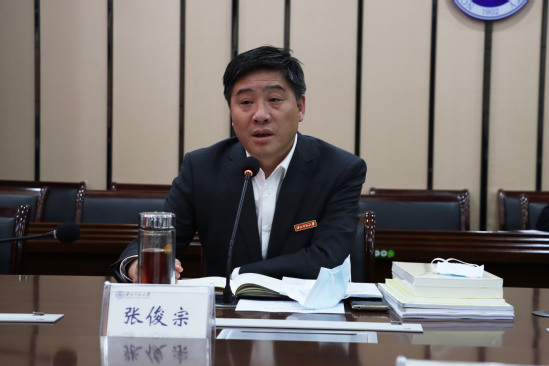 张俊宗强调,要以高度政治责任感和历史使命感在推进甘肃省新能源发展、产业转型升级和接续乡村振兴的新征程上,主动作为、积极担当,既要建设适应绿色低碳发展的相关专业,培养新型低碳技术人才,又要在思想领域促进观念转变,推动社会变革,为全省实现绿色低碳发展破好题、带好头;要深入学习领会习近平新时代中国特色社会主义思想,树立正确马克思主义人权观,将人权理论教育融入学生思想政治教育,带动广大师生讲好中国人权故事,发挥学科优势和专业特长,加强中国人权理论研究,立足中国特色社会主义伟大实践进行理论创新,加快构建具有中国特色、反映时代特点的人权理论体系和话语体系,为推动新时代中国人权事业发展作出更大贡献。