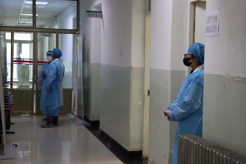 早晨8:00,46岁的校医院主治医师董翠珍准时来到预检分诊点与同事交接,他们需要详细将24小时内每一个病人的病情发展、用药量、注意事项核对登记。“预检分诊点需要医生24小时值守,经常要在凌晨将发热学生送至指定医院的发热门诊,经分诊初步筛查排除疑似新冠后,方可接回校医院临时留观点。在留观点,还需要我们对他们的病情进行合理的诊断医治,每一个步骤都马虎不得。”董翠珍说。从疫情发生以来,她就和同事们“战”在一起,举全力、用真心医治患者。即使从校医院到她的家中仅需要一分钟不到的路程,20多天的时间里,她却没有回过一次家,见过一次家人。