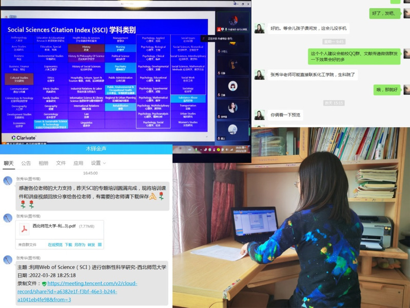停课不停学、闭馆不闭网。图书馆积极响应学校疫情防控工作要求,调整居家工作模式,闭馆不闭网,服务“不打烊”,工作不停歇。图书馆创新思路,拓展服务空间,积极开展读者线上培训、文检知识技能竞赛、资源利用云讲座、资源平台线上升级维护;组织开展线上图书采选;利用微信群、线上咨询台及时回复读者网上咨询;开展线上业务交流讨论,及时解决工作中遇到的问题;实时通过微信公众号/门户网站发布师生关心的资源利用信息……全力做好全校师生教学、科研、学习服务保障工作。
