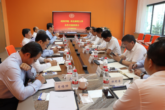 9月28日下午,河西学院党委书记梁兆光、校长张汉燚率团来校调研并召开合作交流座谈会。西北师大党委书记张俊宗、校长刘仲奎出席并讲话,党委副书记刘玉泉主持座谈会;河西学院党委常委、副校长顾长兆,党委常委、教务处处长赵柱出席座谈会。两校相关部门负责人参加相关活动。