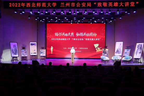 窦勇烈士之子窦永杰警官、李钢烈士之子李俊杰警官分别追忆父亲的英雄事迹;“全国优秀人民警察”、兰州市公安局城关分局刑事侦查直属大队大队长张子剑,“全国公安机关爱民模范集体”代表、兰州市公安局刑警支队电信网络案件侦查大队民警陈荟文分别作分享报告;学校师生和兰州市基层民警代表共同演绎诗朗诵《是谁》、合唱《少年壮志不言愁》,以多种形式缅怀英烈、致敬英雄。