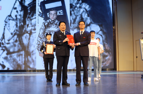 活动现场,刘仲奎向兰州市公安局捐赠8幅由美术学院教师以“缅怀公安英烈,弘扬英模精神”为主题创作的兰州公安英模人员事迹画像;王立朝接受捐赠并向学校颁发收藏证书,八幅作品将被兰州市公安局永久收藏。