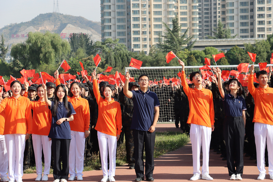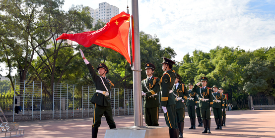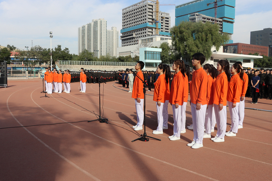 上午10时,在学校西操场,全体师生庄严肃立,伴随着嘹亮的国歌,五星红旗在校园冉冉升起。学校青年马克思主义者宣讲团和新生代表共同诵读《请党放心 强国有我》,同学们以掷地有声、铿锵有力的誓言表达了坚定信仰跟党走,争当伟大理想追梦人和生力军的决心信心,表达了青春心向党,践行立大志、明大德、成大才、担大任的时代要求。仪式最后,全体师生高唱《歌唱祖国》,用歌声献礼祖国,祝福伟大祖国繁荣昌盛、明日圆梦。