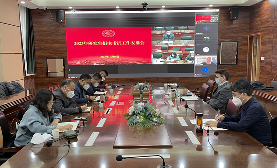 11月28日下午,西北师大召开2023年研究生招生考试工作安排会。党委常委、党委统战部部长、副校长韩高年主持会议并讲话,学校纪委、党委宣传部、党委学生工作部、教务处、人事处、武装保卫处、国有资产管理处、后勤保障部、创新创业学院、校医院、心理健康教育服务中心、知行学院等部门负责人及各学院院长、副书记、研究生院全体干部参加了会议。