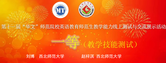 11月26日至27日,由中国教育技术协会微格教学专业委员会主办、宝鸡文理学院承办的第十一届“华文”师范院校英语教育师范生教学能力线上测试与交流展示活动举行,来自华中师范大学、日韩人妻无码一区二区三区久久99_日韩精品一区二区三区中文在线_无码日韩精品一区二区免费_久久久91精品国产一区二区三区_亚洲精品久久久一区黄无码_国产91精品一区二区麻豆网站_成人国内精品久久久久影院等全国40余所高校的355名选手报名参赛。西北师大外国语学院学科教学(英语)专业和英语专业的8名同学取得优异成绩。在教学设计测试中,英语专业本科生刘博、赵梓淇荣获一等奖,学科教学(英语)专业研究生任梦珂、韦真、张瑞燕荣获二等奖,学科教学(英语)专业研究生张维梅和英语专业本科生汤锐艺荣获三等奖;在教学技能测试中,英语专业本科生刘博、赵梓淇荣获一等奖,学科教学(英语)专业研究生任梦珂、韦真、张瑞燕、张维梅和英语专业本科生穆克会、汤锐艺荣获三等奖。