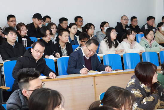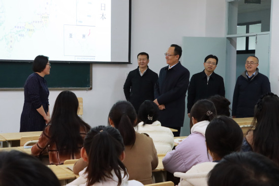 课中,贾宁仔细听课,认真记录,检查了解教师的授课内容、教学方法和教学效果,细心观察学生们的学习状态和精神风貌。课后,贾宁对赵秋静的授课作了点评,对赵老师的教学方法和教学效果给予充分肯定,认为赵老师准备充分、熟悉内容,讲课生动、解析明白、案例生动,并就进一步提升教学效果提出了意见和建议。贾宁强调,思想政治理论课是落实高校立德树人根本任务的关键课程,要求学校思政课教师要着力提升思政课教学质量、努力打造新时代高水平思政“金课”。