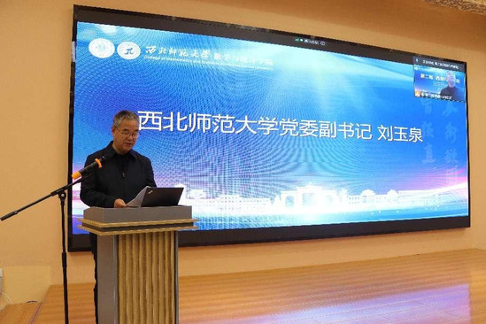 西北师大党委副书记刘玉泉出席开幕式并致辞。刘玉泉向与会专家介绍了西北师大的发展历程和现状,他表示,本次会议是我校于2022获批成立甘肃省数学与统计学基础学科研究中心后承办的第一次学术会议,既是对几何学及相关领域发展的一次系统把脉问诊,更为加强学术交流、跟踪学科前沿、促进科研创新搭建了一个很好的平台。希望各位专家学者能够畅所欲言、深入探讨,交流经验、增进友谊,进一步推动我校数学学科取得更好发展;希望数学与统计学院以本次会议为契机,加强与各位专家学者的交流与合作,在加快学科发展的同时为培养更多的高层次数学专业人才贡献力量。