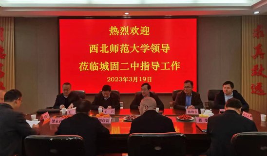 3月18至19日,西北师大党委常委、副校长田澍和社会合作服务处、教师教育学院、教务处负责人赴汉中市参加以“奋进中国式现代化新征程,谱写汉中高质量发展新篇章”为主题的2023年汉中高质量发展大会,并赴城固县第二中学寻访学校西迁足迹,商谈学校与城固县战略合作事宜。