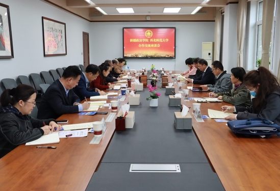 万朝林简要介绍新疆政法学院发展历程、办学情况。他表示,两校立足西北、服务地方经济发展,有着良好的合作基础和合作前景,新疆政法学院正处于快速成长发展期,急需西北师大在人才引进、学科建设、科研能力、学校管理等方面给予关心支持、给予温暖力量,学校也将学习借鉴西北师大先进经验做法,推动相关领域合作交流走深走实。