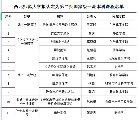 西北师大11门课程入选第二批国家级一流本科课程公示名单