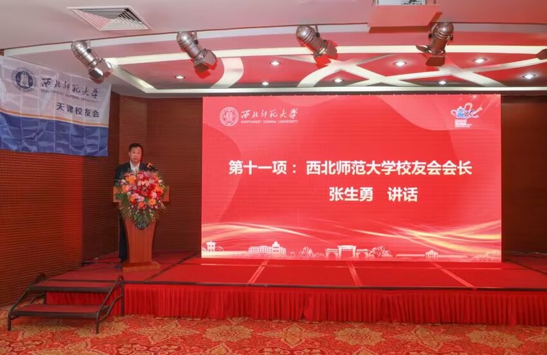 张生勇向天津校友代表大会暨第二届理事会换届大会成功举办和新任的理事会成员们表示祝贺,对西北师大校友们长期关心和支持母校发展表示感谢,并从学校定位、办学优势、办学目标和办学成果向与会校友介绍了学校的发展情况。他希望新一届理事将努力做好牵头人、联络员、宣传员和服务员的工作,积极壮大校友会的规模,搭建交流平台,优化校友服务,充分发挥桥梁纽带作用,汇聚校友智慧力量,为地方经济社会发展、助推母校“双一流”建设贡献更多的智慧和力量。同时还邀请校友们择时重返校园,共忆美好岁月。