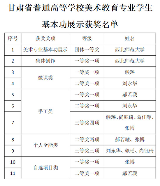 西北师大在甘肃省普通高等学校美术教育专业学生基本功展示活动中获奖