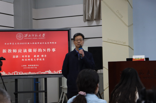 4月27日,校长刘仲奎为新入职教师作了题为“新教师应做好的n件事”专题讲座。他从教师成长发展的规律出发,结合自身发展经历,围绕形成教学风格、积聚研究经验、争取国家项目、保持良好心态等内容,为新入职教师如何做好教学科研、养成良好习惯、树立正确价值观,做一名合格的大学教师进行了讲授阐述。