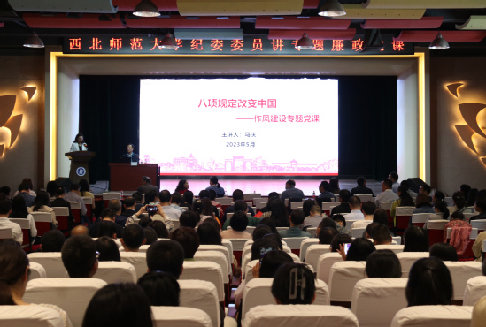 5月24日,校党委常委、纪委书记、监察专员马庆为机关党委、经济学院党委和商学院党委讲授题为《八项规定改变中国专题廉政党课。机关全体党员、经济学院和商学院师生党员共计300余人聆听了党课。
