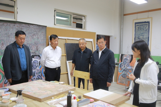 李建民一行先后前往学院当代美术馆、创新中心、泥版画工作坊、泥塑工作坊、壁画临摹室等实地查看,详细了解学院办学条件和教育教学情况,并对相关工作的开展给予了充分肯定。