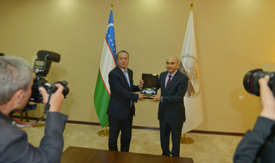 在乌兹别克斯坦,王占仁、田澍一行访问了撒马尔罕大学,与校长阿布德拉赫马诺夫·脱拉别克· 阿布洛维奇(Khalmuradov Rustam Ibragimovich)进行了亲切会谈,双方希望利用各自高校的专业优势,在水资源、青年发展、数学、化学、生物、物理、考古等领域开展长期合作,拓展合作领域,深化合作内涵,实现共赢发展。