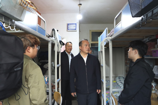 王占仁一行先后前往化学化工学院、生命科学学院、地理与环境科学学院实验室进行实地查看,详细了解学院实验室平台运行管理、重点重大项目培育、成果转移转化能力提升、学科发展、教育教学及安全建设情况,并对相关工作开展给予充分肯定。随后,王占仁深入云亭、知行校区餐厅后堂操作间及兰天学生公寓宿舍进行实地查看,仔细听取后勤保障部、党委学生工作部负责人关于校园食堂食品安全、假期物资供应保障、学生留校、消防安全等工作开展情况,同时看望假期留校学生并进行亲切交流。