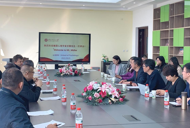 10月23日,德国心理学家莱纳尔·米勒(Rainer Müller)、省教育厅二级巡视员赵振文、中欧合作委员会秘书长尚继星一行到西北师大心理学院调研中德心理健康服务合作项目。心理学院、教育科学学院特教专业20余名师生参加座谈。