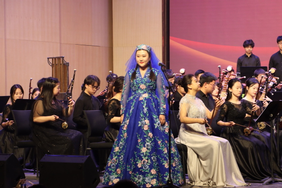 新年音乐会在民族管弦乐曲《国风》中拉开帷幕,西北师大音乐学院民族管弦乐团带来了《大起板》《迎春》《雪白的鸽子》《红高粱》等曲目,奏响充满希望的新年乐章。诗朗诵《站在祖国的北方》深情讴歌教育家精神,讲述西北师大人扎根西北、弘扬教化的教育初心。西北师大音乐学院交响乐团演奏了《红旗颂》《拿波里舞曲》《在那遥远的地方》《草原的升起不落的太阳》《鸿雁主题随想曲》《铁匠波尔卡》《领航》等中外经典曲目,在绚烂的灯光下、美妙的旋律中、激荡的感情中为观众呈现了一场精彩纷呈的视听盛宴,赢得了观众的阵阵掌声。
