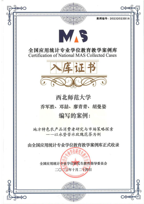 近日,由全国应用统计专业学位研究生教育指导委员会(MAS)指导,全国工业统计学教学研究会、中国现场统计研究会、中国统计教育学会高等教育分会联合举办的“2023第六届全国应用统计专业学位研究生案例大赛”结束。西北师大数学与统计学院师生获二等奖案例3个、三等奖案例2个,首次入选“全国应用统计专业学位教育教学案例库”案例1个。