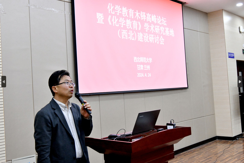 4月24日,西北师大举办化学教育木铎高峰论坛暨《化学教育》学术研究基地(西北)建设研讨会(第一届),党委常委、副校长李建民出席会议并致开幕辞。学校研究生院和教务处等相关单位负责人和化学化工学院部分师生参加了研讨会。