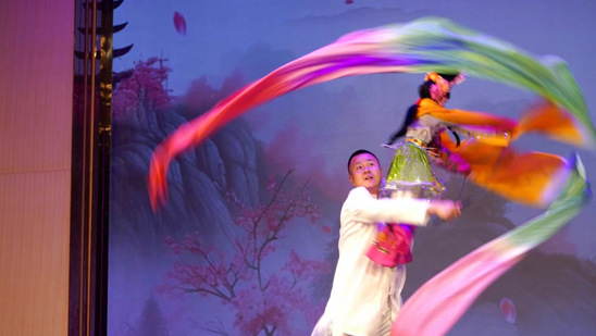 原创歌舞《鸠摩罗什》(选段)、《天马舞》《千年相思》《等你在凉州》等将新颖的编舞理念与传统舞蹈元素相结合,展现了丝绸之路雄浑壮丽之景象,凸显了中华民族乐舞一体的别样魅力,为观众展示了一幅美轮美奂的舞蹈画卷。