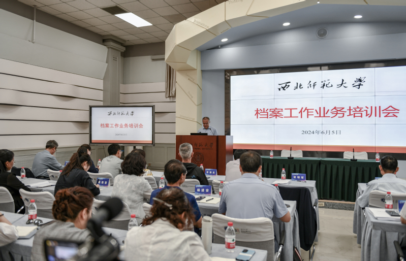 6月5日,西北师大召开档案工作业务培训会。国家档案局原局长、中央档案馆原馆长、中国档案学会理事长杨冬权研究馆员,甘肃省档案馆副馆长李海洋,西北师大副校长张明军出席。省委办公厅(省档案局)、省档案馆、省档案学会相关部门负责人及兰内相关高校档案馆馆长,西北师大各单位分管档案工作的领导和档案员,档案馆全体工作人员参加。会上,党委组织部、党委宣传部、就业与校友事务处相关工作人员结合本单位工作,作交流发言。