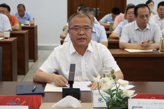 张明军从统筹做好假期与新学期工作有效衔接、重点任务筹备组织、教育教学工作、学生教育管理、服务保障和基建工作及加强校园安全隐患排查整治等6个方面安排部署暑假工作。他强调,各学院、各单位要切实提高政治站位,高度重视暑假期间值班工作,强化值班值守和应急处置,确保暑期各项工作有序运转;要强化责任意识,有效维护校园安全稳定,切实做到职责明确、责任到人、工作到岗、监督到位;要严肃纪律作风,严格按照学校暑期安排部署推进工作,保障各项工作健康有序运行。