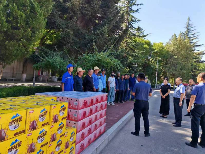 8月19日上午,学校党委副书记、工会主席王全进,党委常委、党委组织部部长周琳辉带领工会工作人员,分别来到后勤保障部工作一线、党委武装保卫部门卫工作岗、基建处工地现场,开展暑期送清凉慰问活动。