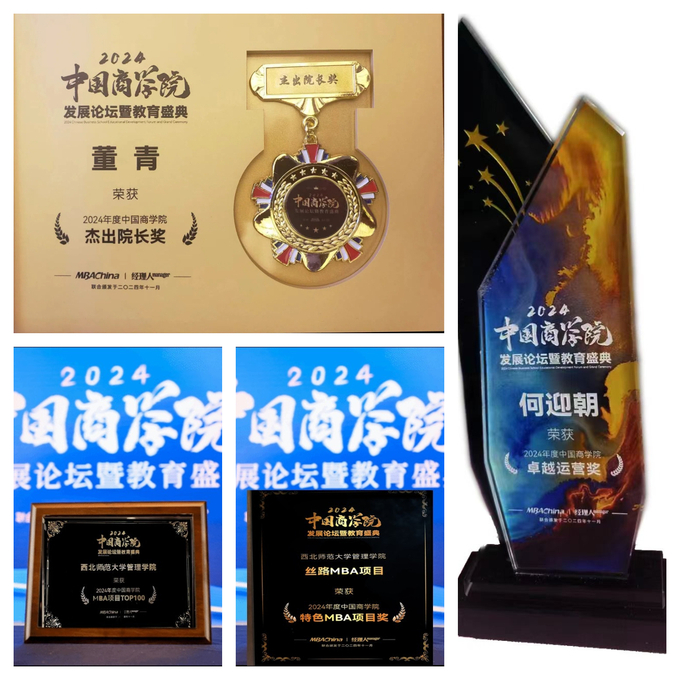 11月29日,由MBAChina和经理人杂志联合主办的“2024年度中国商学院发展论坛暨教育盛典”在北京召开。盛典现场发布了2024年度中国商学院系列TOP”等榜单,表彰2024年为MBA教育作出突出贡献的项目、团队和个人。西北师大MBA中心入选“2024年度中国商学院MBA项目TOP100”榜单,并荣获“全国商学院特色MBA项目奖”。西北师大管理学院董青荣获“2024年度中国商学院杰出院长奖”,管理学院何迎朝荣获“2024年度中国商学院卓越运营奖”。