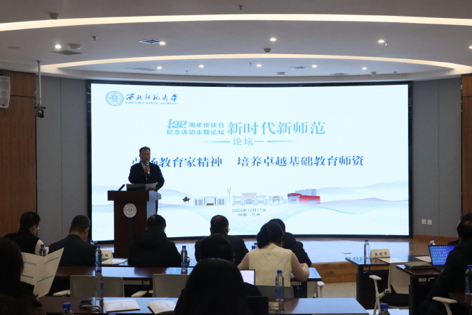 12月17日,西北师大举办“新时代 新师范”122周年校庆日纪念活动主题论坛。论坛以“多维视野下的人文社会科学建设”“理工交叉融合,赋能学科高质量发展”“弘扬教育家精神,培养卓越基础教育教资”为主题,开展系列学术报告和交流研讨。副校长赵鑫、马世年出席并主持论坛,学校各部门及各学院相关负责人,学术骨干、师生代表共计400余人参加。