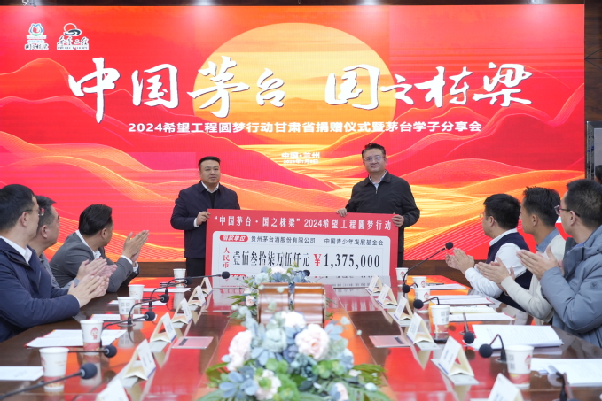 活动中,贵州茅台酒销售有限公司和中国青少年发展基金会向甘肃省青少年发展基金会捐赠“中国茅台·国之栋梁”2024希望工程圆梦行动甘肃省助学金137.5万元;与会人员共同观看了“中国茅台·国之栋梁”2024希望工程圆梦行动公益宣传片。