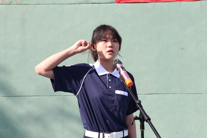 运动员代表数学与统计学院郭晓斌代表全体运动员宣誓,裁判员代表体育学院本科生王俪潼代表全体裁判员宣誓。