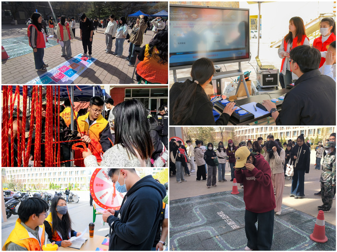 活动当天,学生社区内气氛热烈,七大特色教育模块吸引了全校师生广泛参与。在“国家安全知识竞赛”中,参赛者通过抢答形式学习《国家安全法》《反间谍法》等法律法规;“VR国家安全体验”以虚拟现实技术模拟真实案例,让参与者直观感受维护国家安全的紧迫性;“结绳训练”“醉酒行走”等实践项目,通过模拟应急场景,强化安全技能与团队协作能力。此外,“国家安全大转盘”“跳房子”“智取抽球”等趣味游戏,将国家安全知识融入互动环节,寓教于乐,深受学生欢迎。