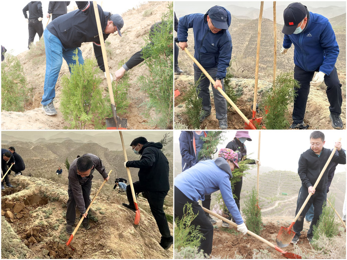 4月18日,党委书记贾宁,校领导焦爱胜、王文昇、阎岩,党委常委、党委组织部部长周琳辉带领机关干部前往知行校区北山参加义务植树劳动。大家干劲十足,有的挥锹铲土,有的扶苗填坑,有的提水浇灌,每一个环节都认真细致、有条不紊,在专业技术人员的指导下,严格按照植树标准和要求进行操作。经过大家紧张的劳动,一株株新栽种的树苗舒展身姿、迎风挺立,在微风中萌发盎然生机,为春日的北山增添了活力,呈现出勃勃生机。