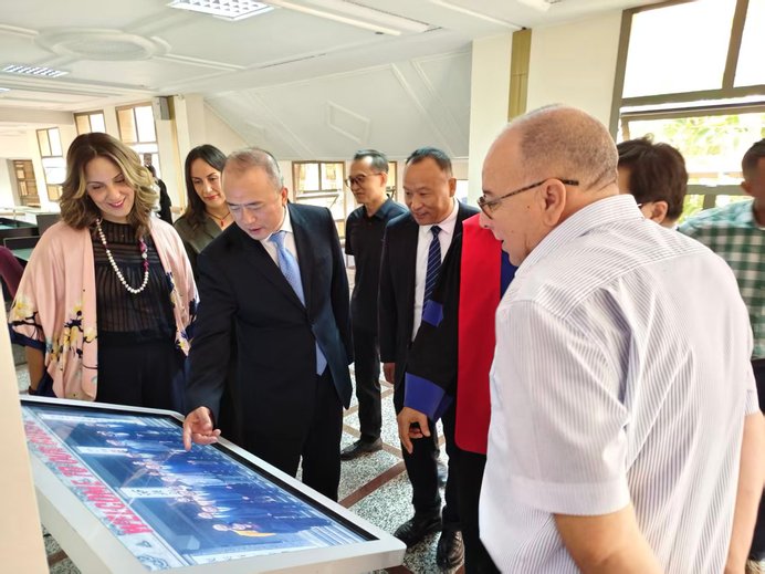 在阿尔及利亚访问期间,代表团一行先后访问了康斯坦丁第一大学与阿尔及尔第二大学。王占仁与康斯坦丁第一大学校长艾哈迈德·布拉斯共同出席中文本科专业开班仪式。该专业是阿国第二个中文专业,今年9月已招收30名学生。在阿尔及尔第二大学,王占仁和阿尔及尔第二大学校长Said Rahmani共同为孔子学院揭牌,并召开首届理事会。