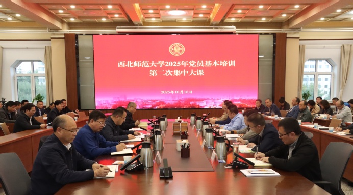 10月16日,西北师大举行2025年党员基本培训第二次集中大课,组织全校师生党员集中观看学习教育部党组书记、部长怀进鹏主讲的专题辅导报告。党委书记贾宁主持培训并作总结讲话。校领导焦爱胜、张明军、王文昇、阎岩、张金尧、马利邦,学术副校长荀渊出席,党委常委、党委组织部部长周琳辉参加。省委教育工委相关处室负责同志到会指导,来自省内六所兄弟院校党委组织部门负责同志到场观摩。全校5700余名师生党员在1个主会场和51个分会场同上一堂课。